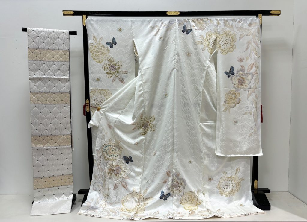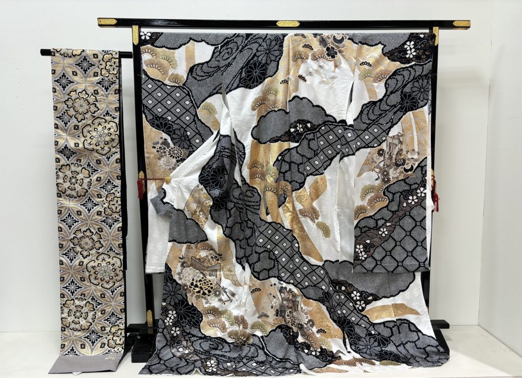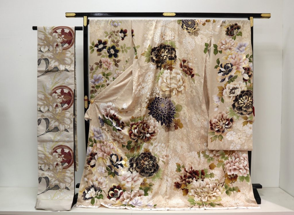 地色の色調は華やかなものが多く、柄も古典柄の大胆なものが多く使われていますが、中にはパーティードレスをイメージするものも制作されています。