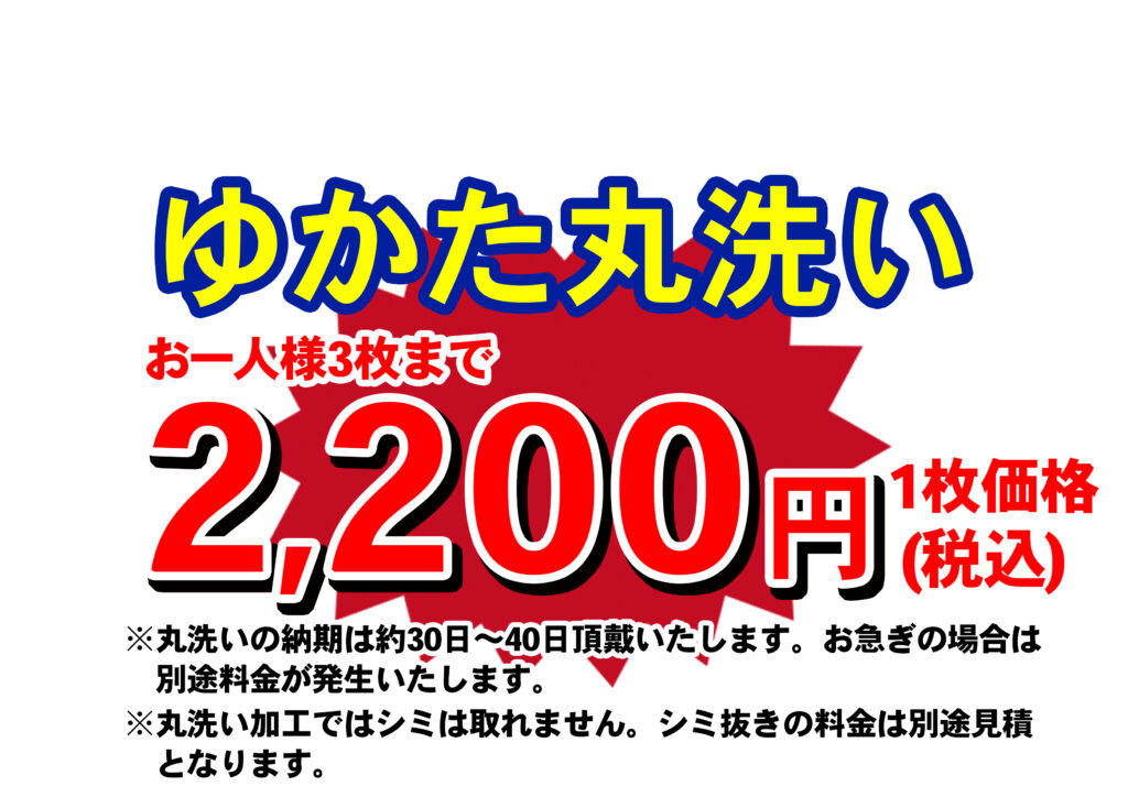 浴衣の丸洗いサービスは2,000円(税抜)でご提供